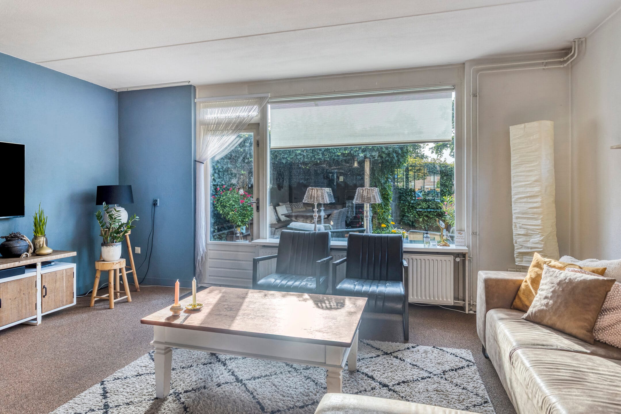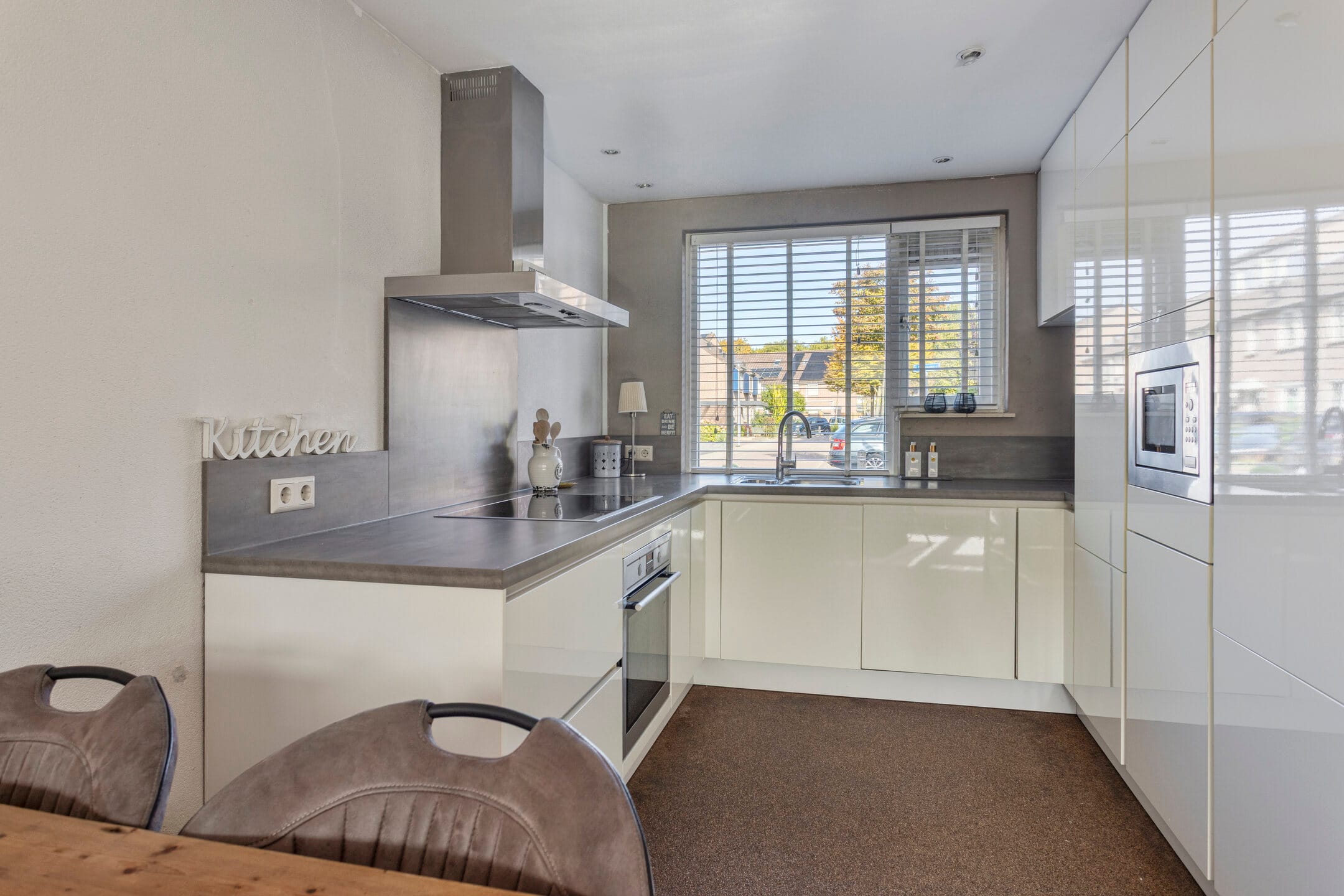De tuingerichte woonkamer met trapkast biedt een sfeervolle zitruimte met prettig zicht op de prachtig aangelegde achtertuin. Aan de voorzijde bevindt zich de moderne open keuken, compleet uitgerust met inbouwapparatuur en een fraai uitzicht op de straat.