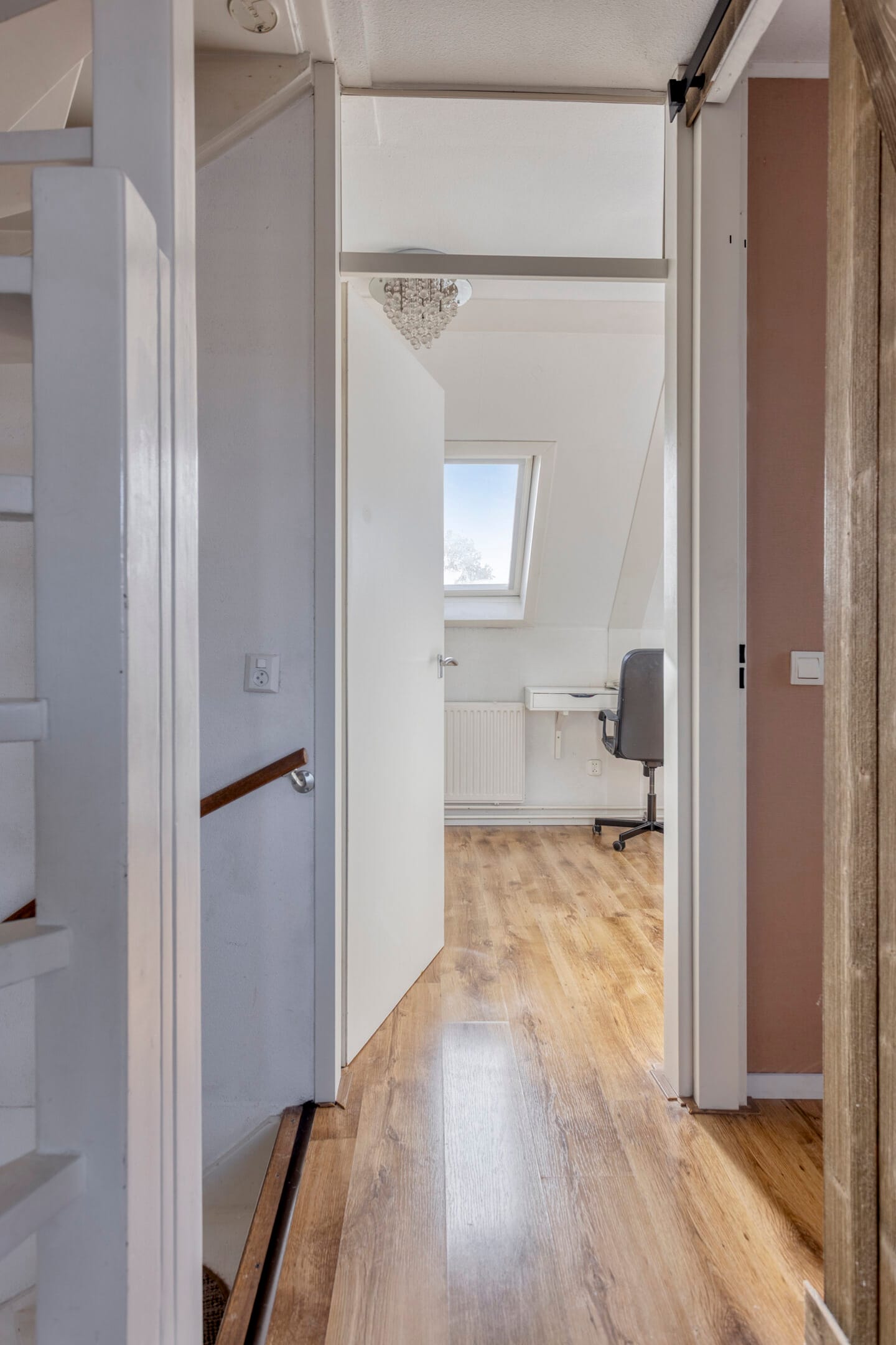 Een vaste trap leidt naar de royale zolderverdieping. Deze open ruimte wordt gebruikt als derde slaapkamer met dakraam, stookruimte en biedt volop opbergmogelijkheden.