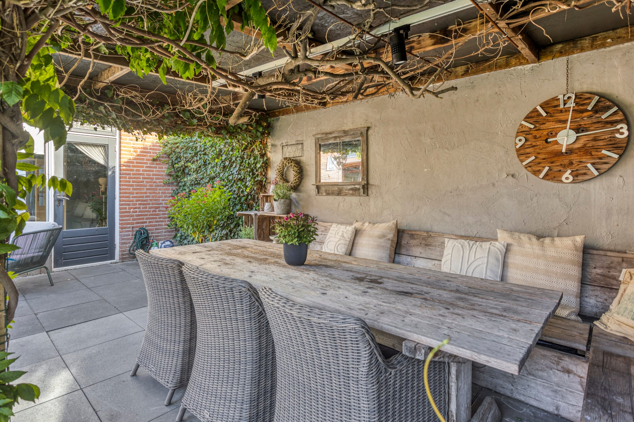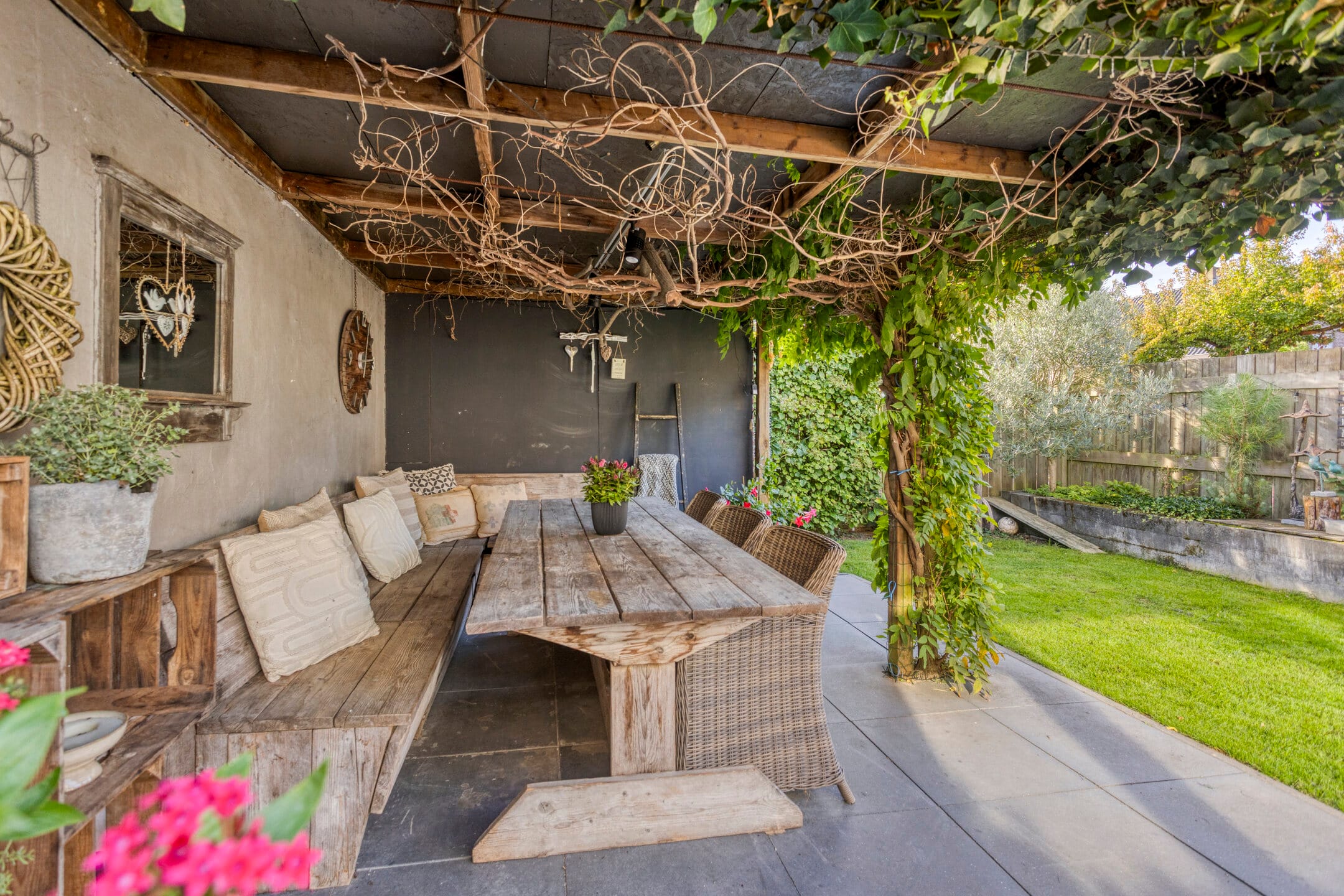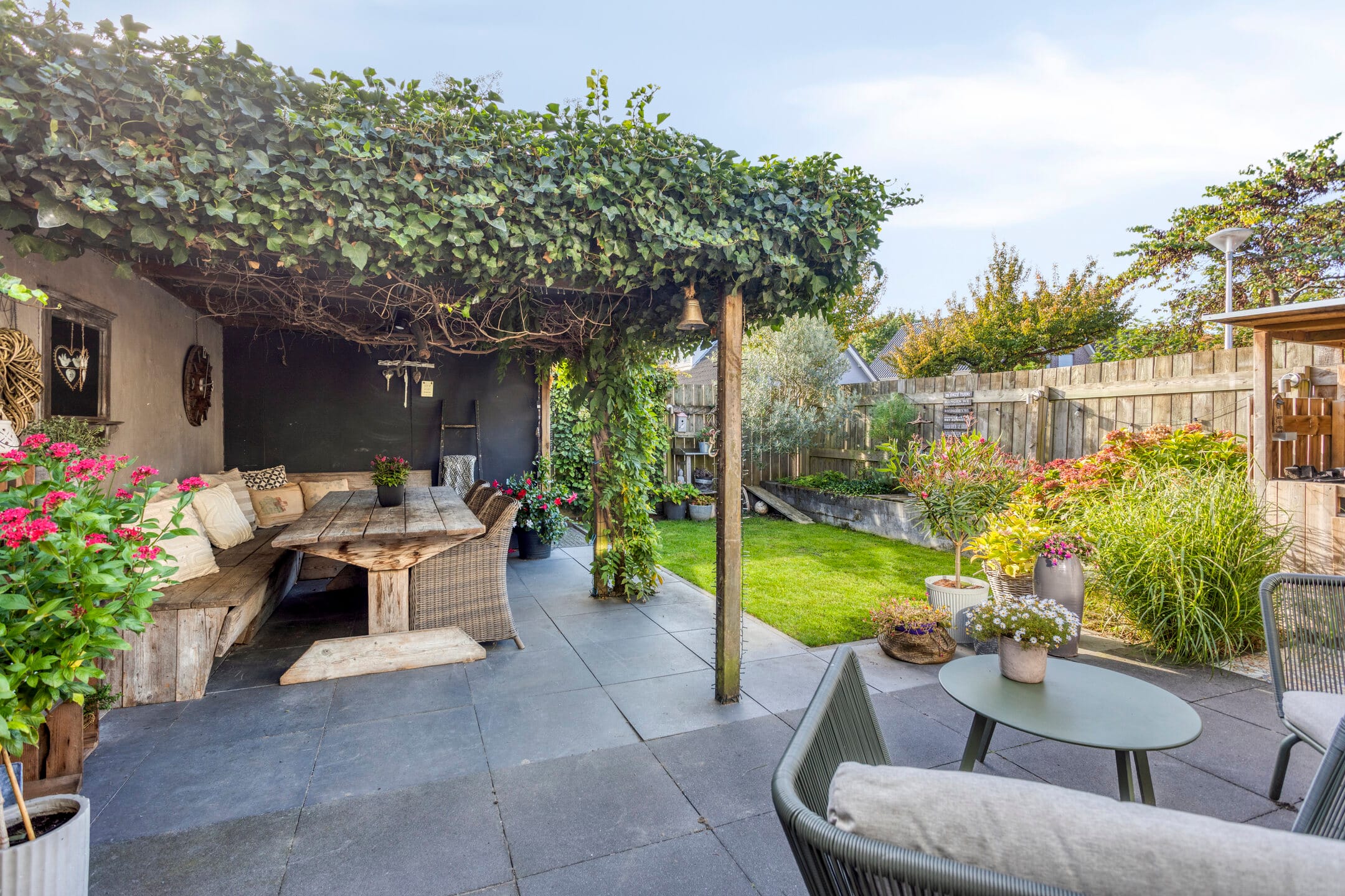 De woning beschikt over een prachtig aangelegde achtertuin met een mooie overkapping. Dankzij de verschillende zitjes is het mogelijk om op elk moment van de dag van de zon te genieten.